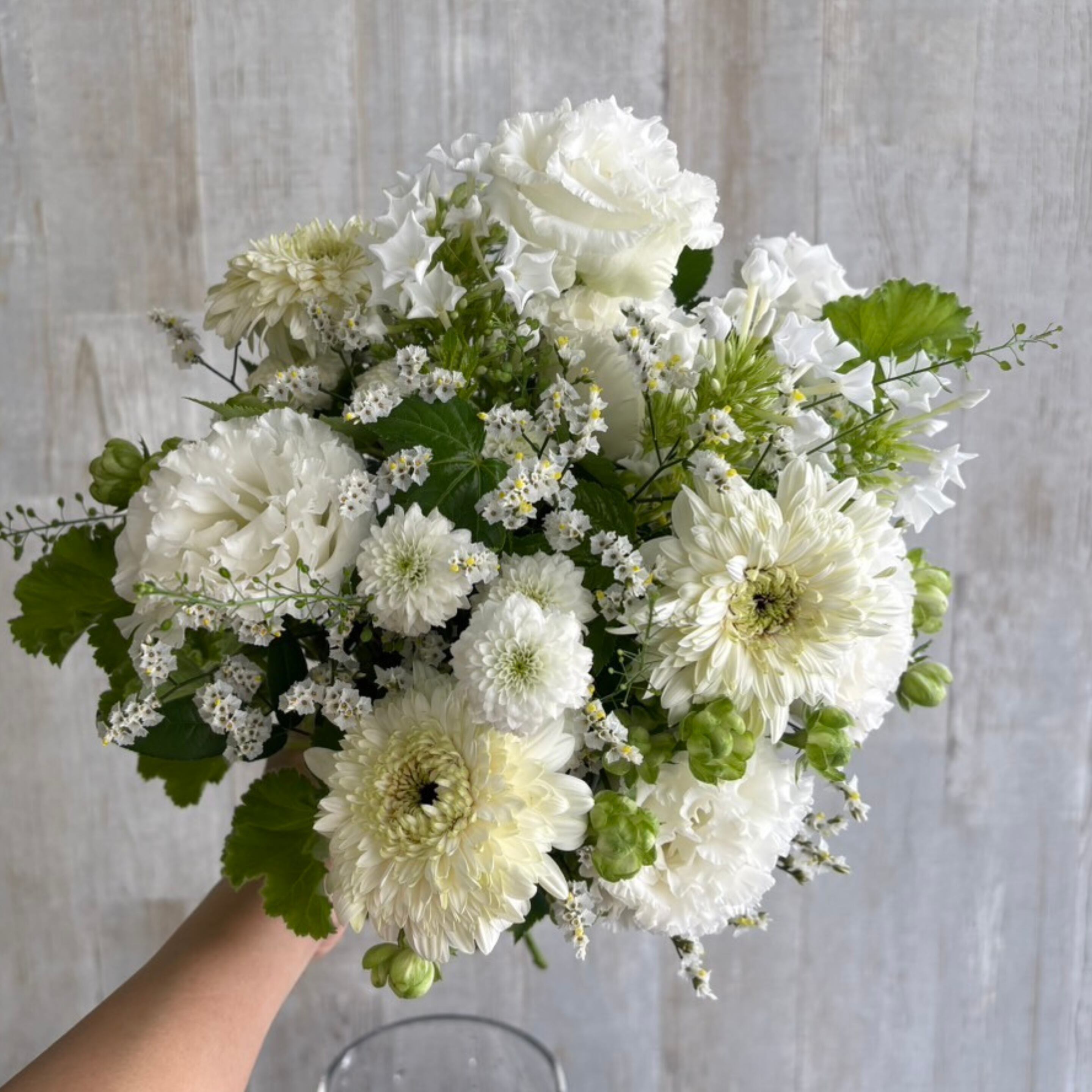 【来店受取限定】ホワイト&グリーンのナチュラルブーケ