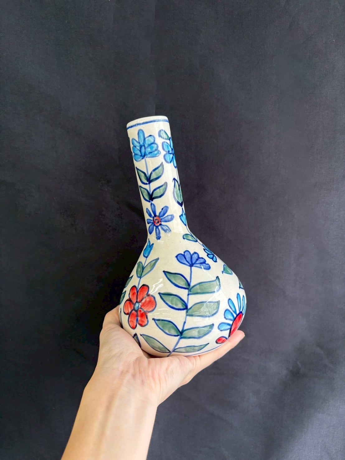 インドの職人が一つずつ手作業で仕上げている陶器の花瓶。