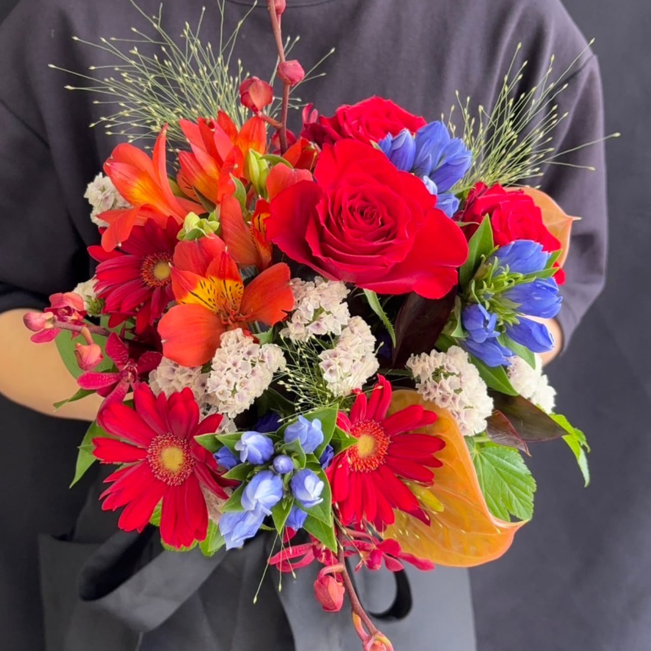 # レッド&オレンジの秋色ブーケ