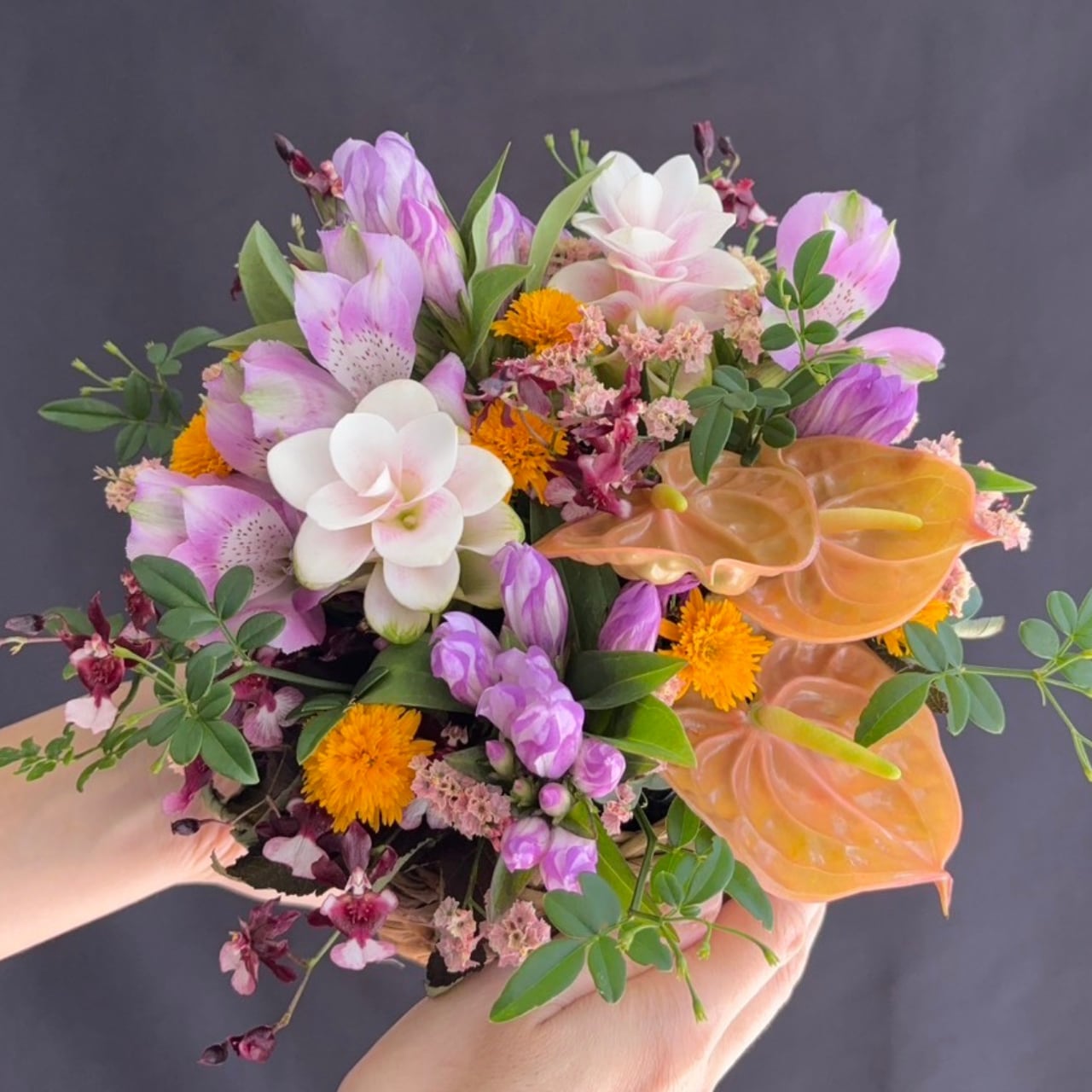 ※写真はイメージです。直近の花市で仕入れた新鮮なお花を使ってお作りいたしますので、季節によって使用する花材が変更になる可能性がございます。できる限り掲載写真に雰囲気をあわせてご用意いたしますので、ご了承ください。