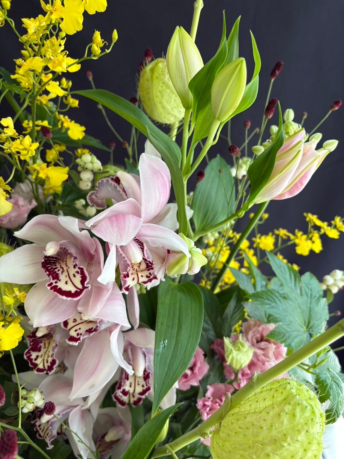 ※写真はイメージです。直近の花市で仕入れた新鮮なお花を使ってお作りいたしますので、季節によって使用する花材が変更になる可能性がございます。掲載写真にできる限り雰囲気をあわせてご用意いたしますので、ご了承ください。