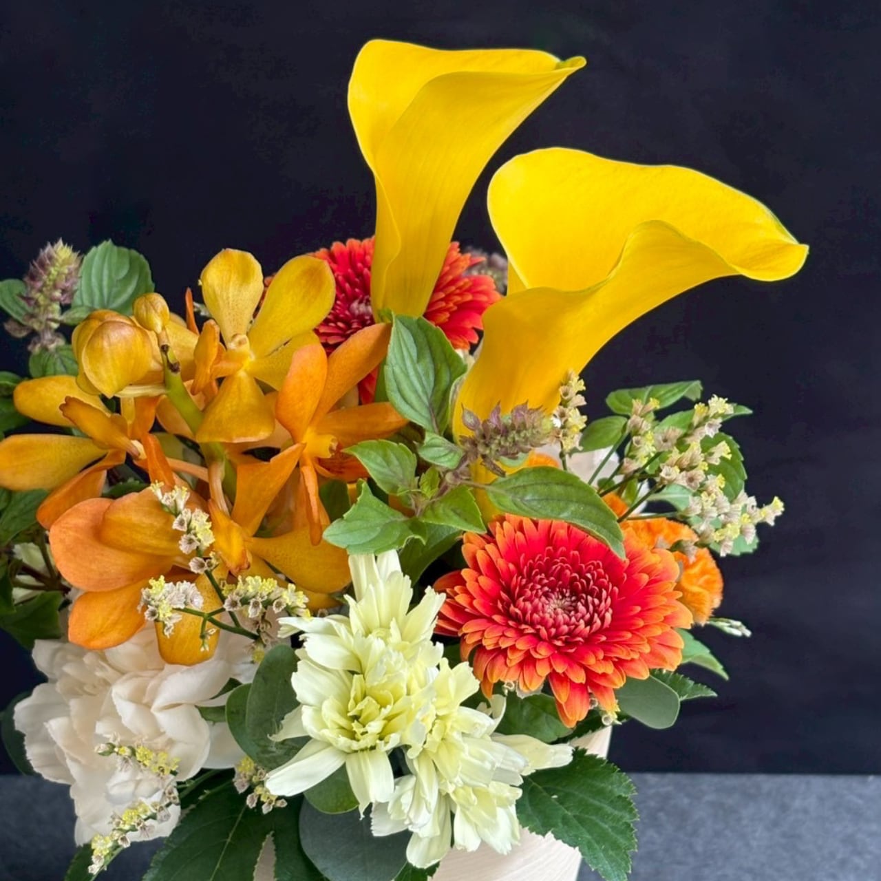 ※写真はイメージです。直近の花市で仕入れた新鮮なお花を使ってお作りいたしますので、季節によって使用する花材が変更になる可能性がございます。掲載写真にできる限り雰囲気をあわせてご用意いたしますので、ご了承ください。
