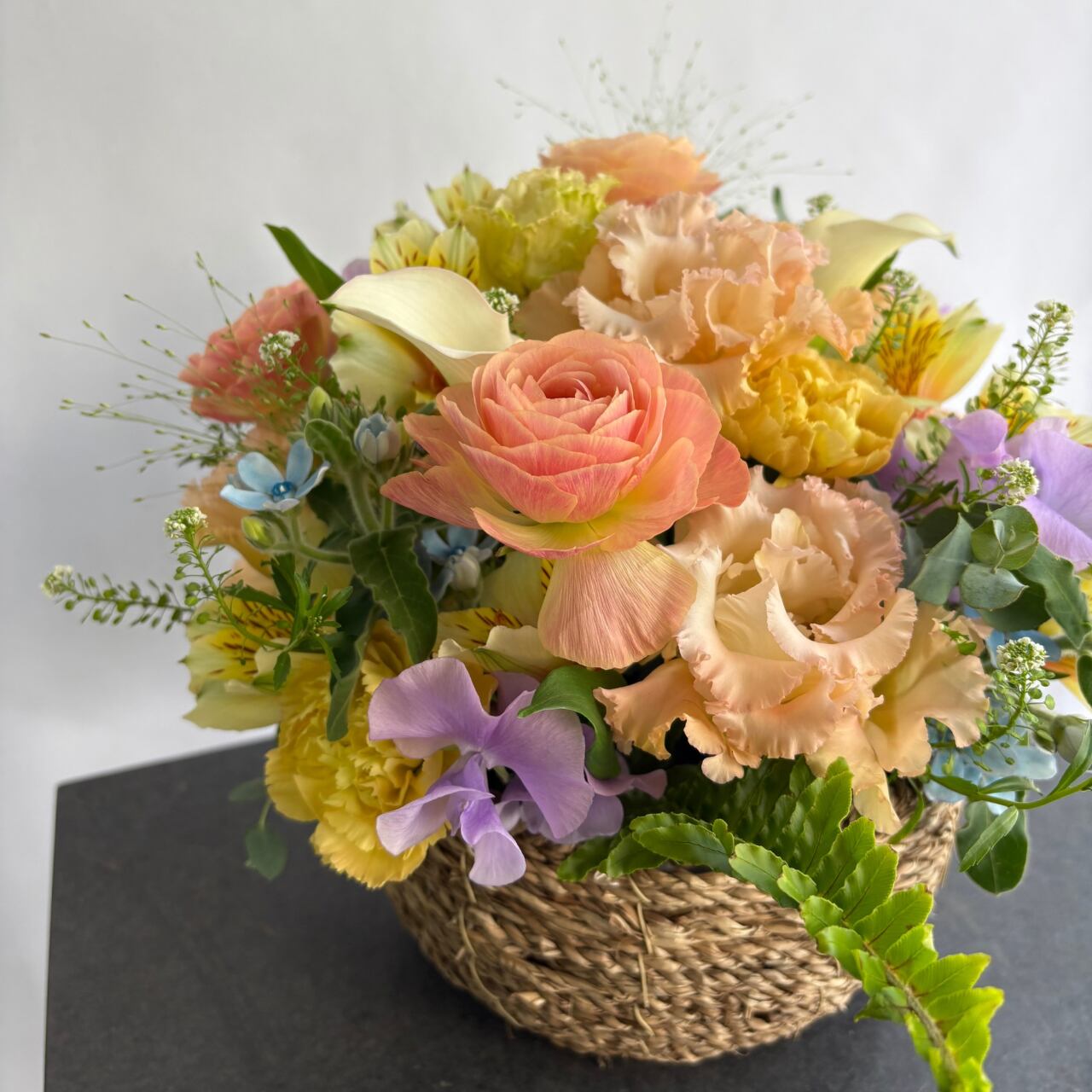 ※写真はイメージです。直近の花市で仕入れた新鮮なお花を使用してお作りいたしますので、季節によって使用する花材が変更になることがあります。掲載写真にできる限り雰囲気を合わせてご用意いたしますので、ご了承ください。