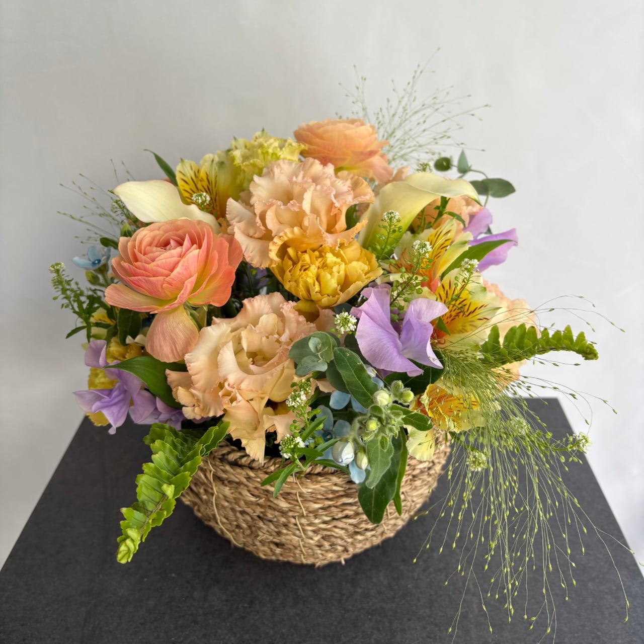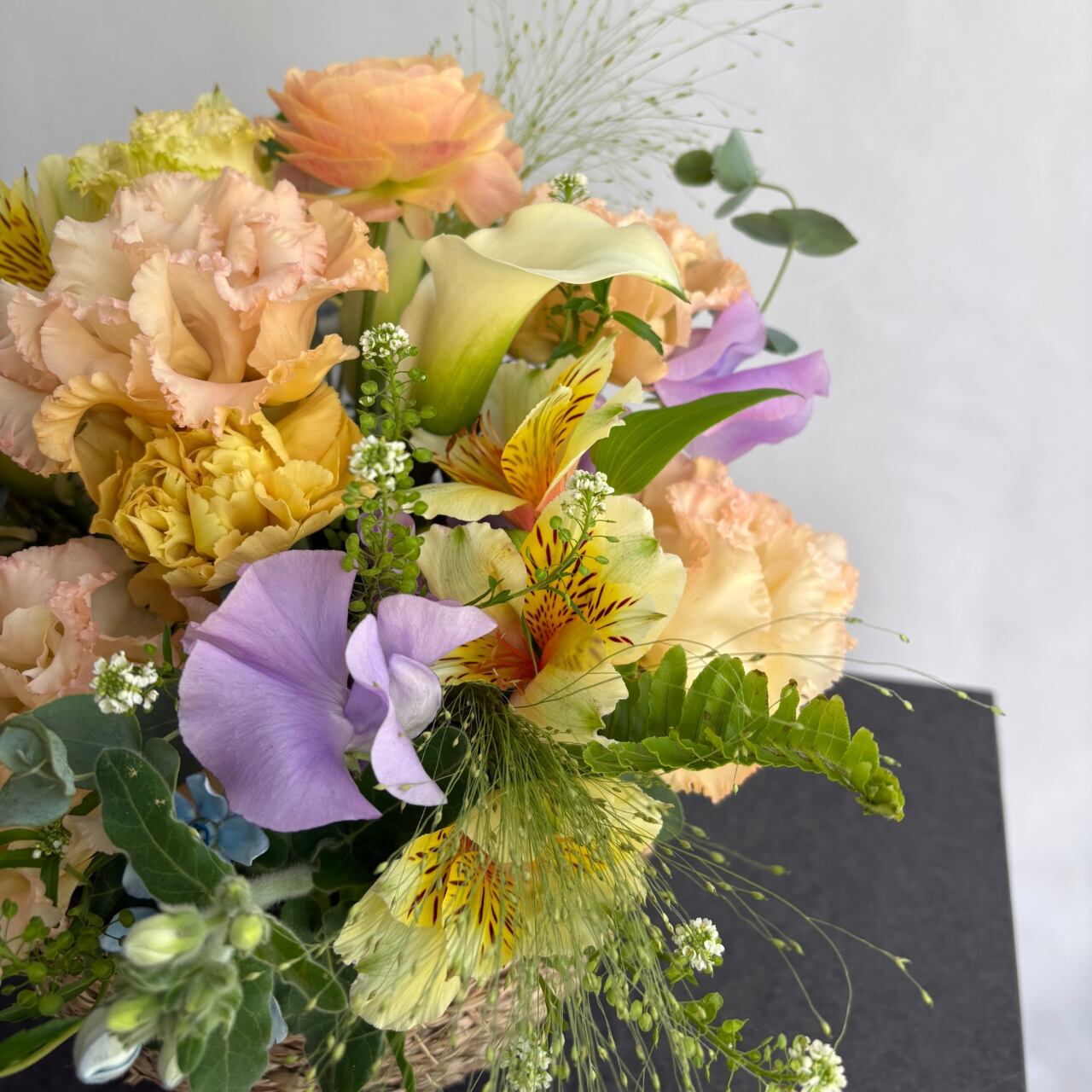 ※写真はイメージです。直近の花市で仕入れた新鮮なお花を使用してお作りいたしますので、季節によって使用する花材が変更になることがあります。掲載写真にできる限り雰囲気を合わせてご用意いたしますので、ご了承ください。